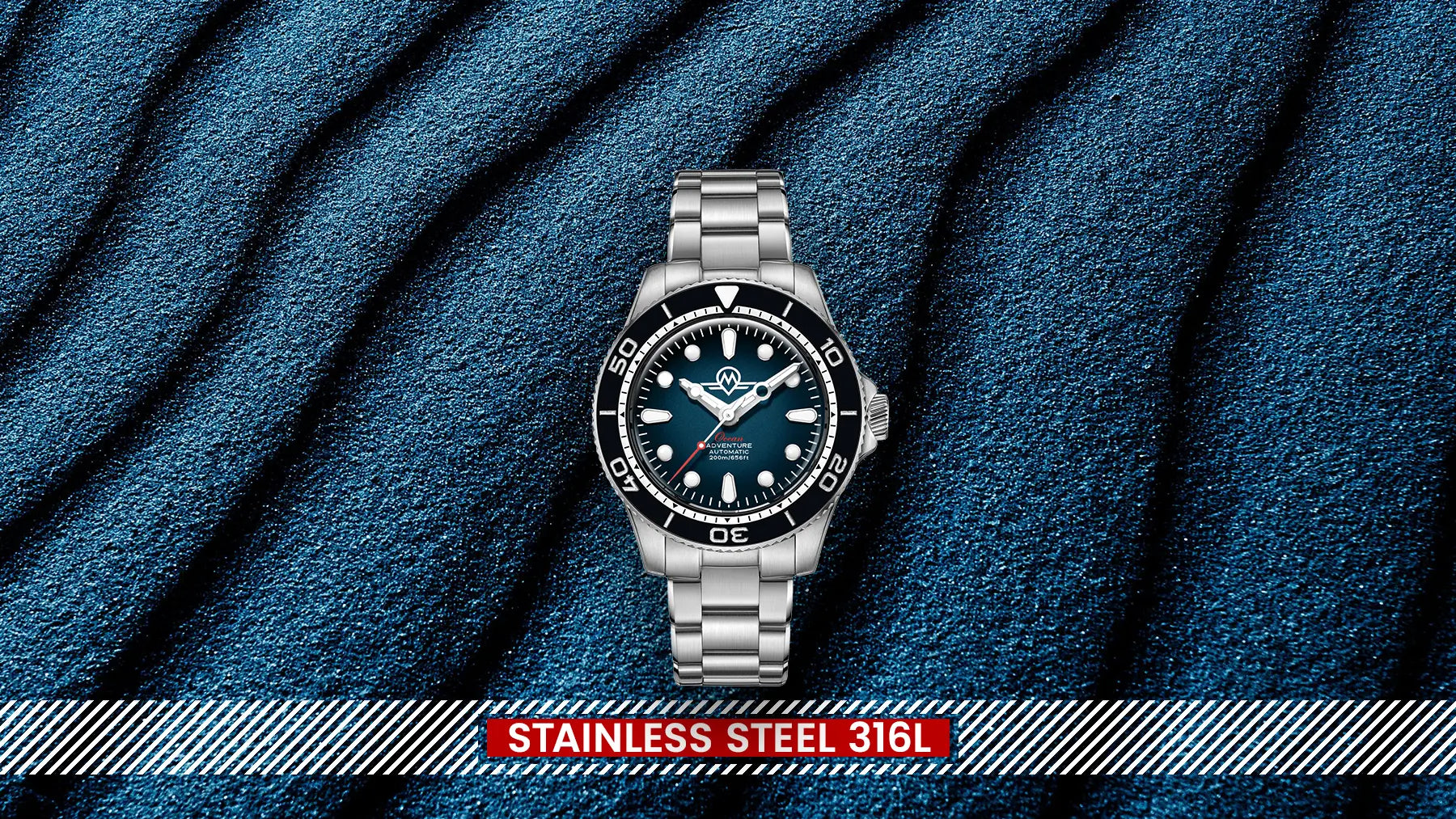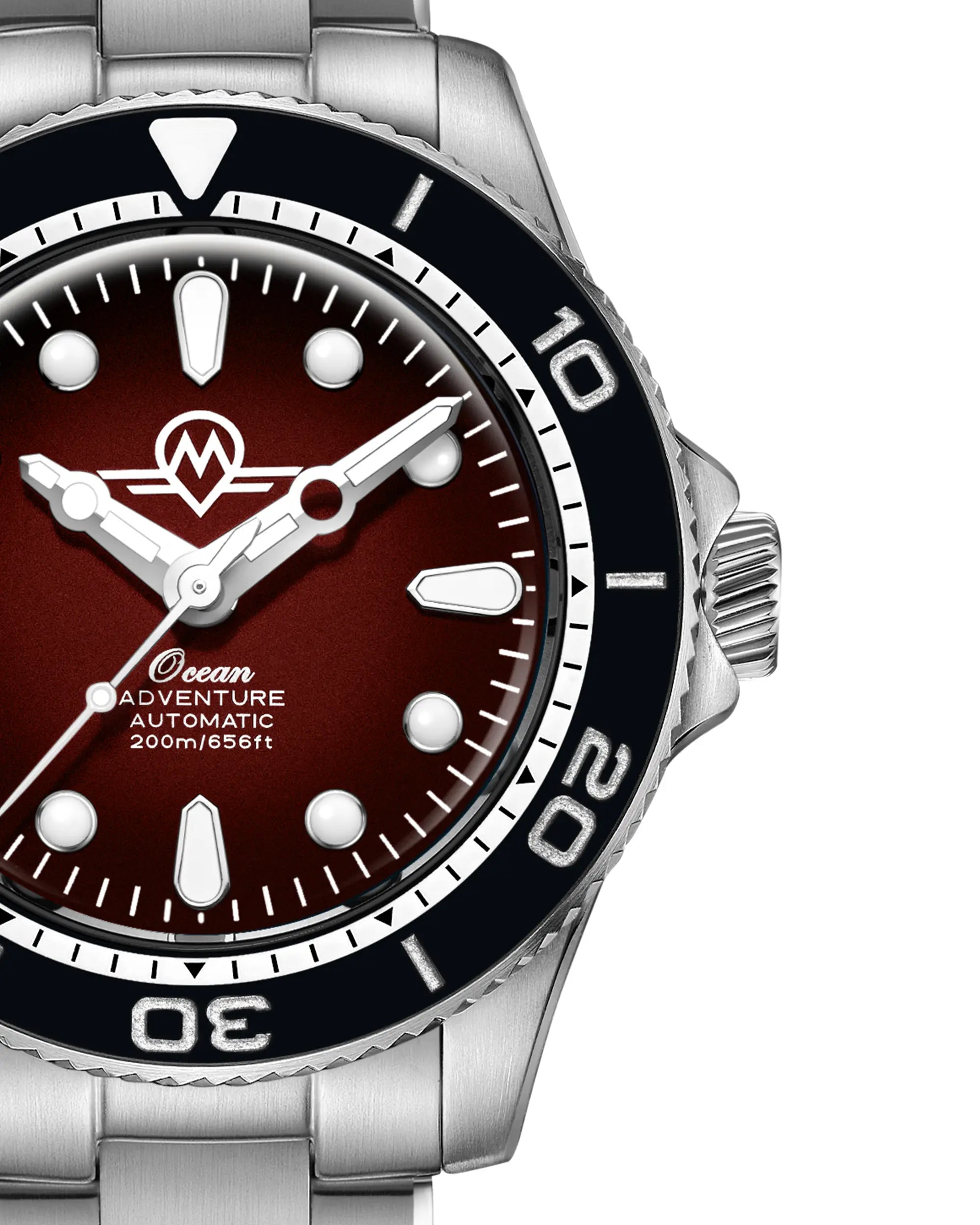 Engineered for explorers who demand both form and function, the MONRO OCEAN ADVENTURE 41mm case is a masterpiece of precision craftsmanship. Designed to safeguard the NH38A 3-hand automatic movement—a self-winding workhorse renowned for its reliability—the case combines rugged durability with clear attention to detail. Its surface finish is brushed for a refined, tool-watch aesthetic, while a high-polish facet sweeps dynamically from lug tip to crown guard, evoking the powerful arc of a crashing ocean wave. This seamless fusion of texture and shine creates a captivating contrast, ensuring the watch transitions effortlessly from underwater expeditions to elevated occasions.