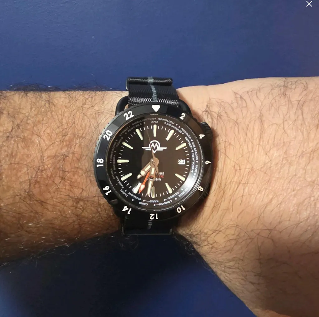 MONRO ADVENTURE MA-5 URBAN BLACK X, Automatic GMT Worldtimer, 44mm Stainless Steel, Black Dial