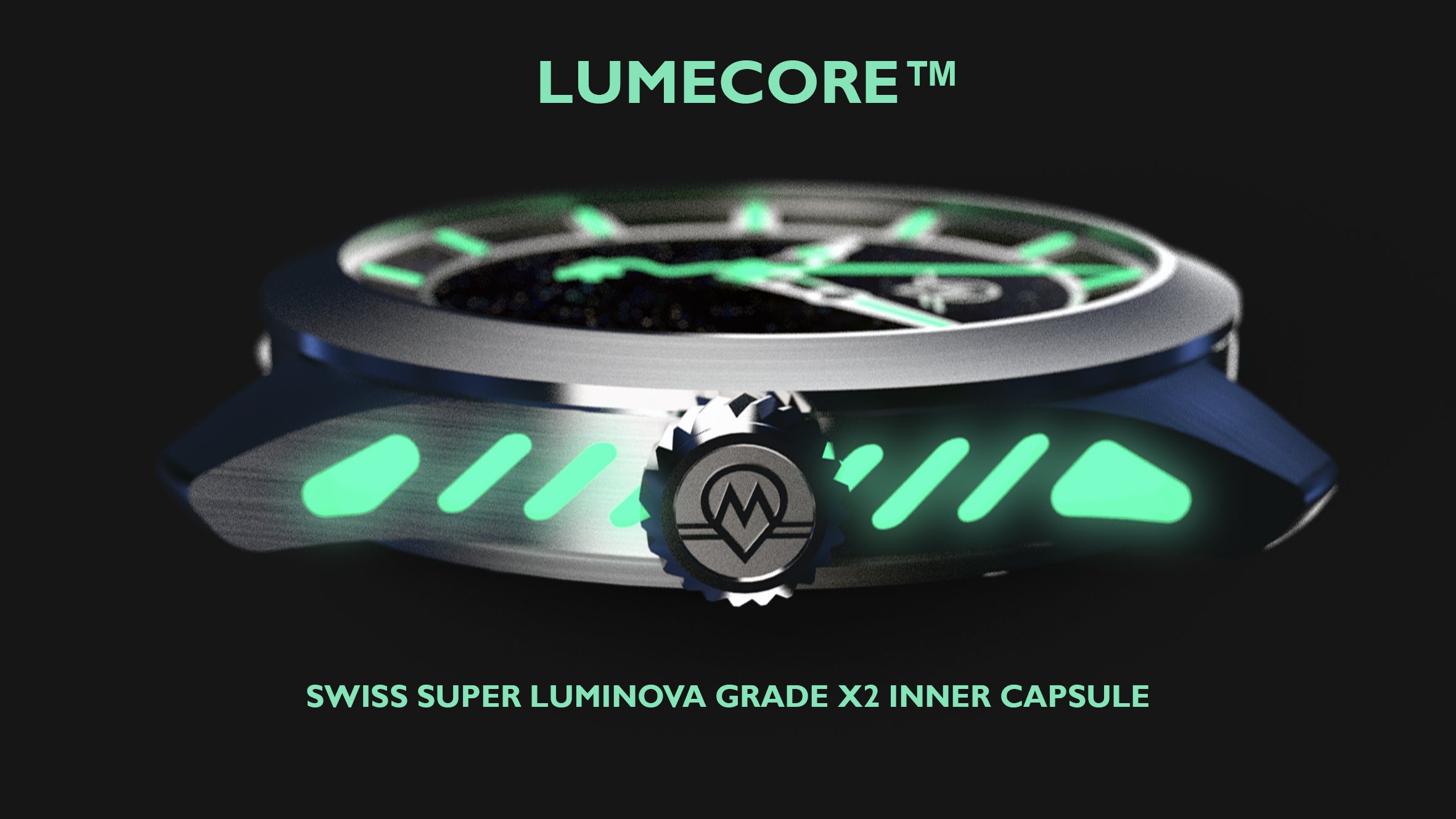 Luminosity: LUMECORE™ SLC1 Superluminova Green Inner Case Capsule. SLC1 Superluminova Green Index & Hands