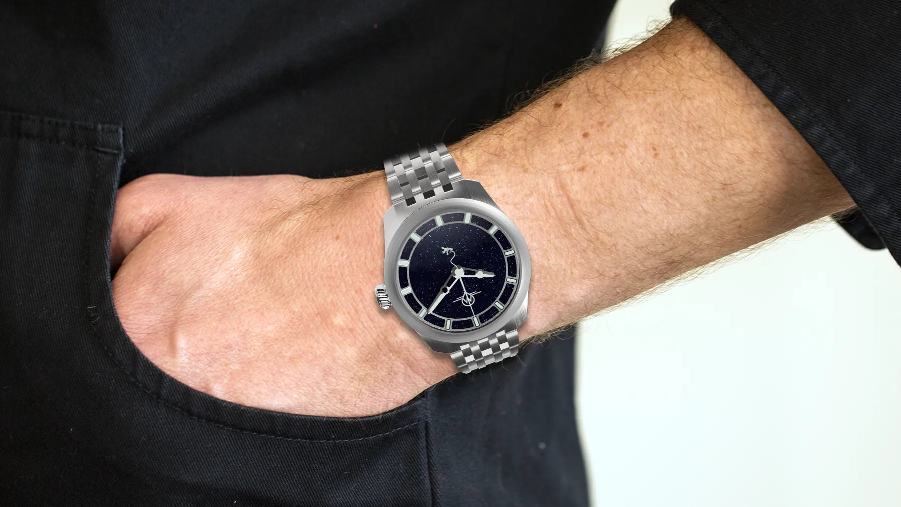 Featuring a the cosmic beauty of Aventurine for both outer and inner dials, with a special, fully luminous Capt. Monro Astronaut second hand.