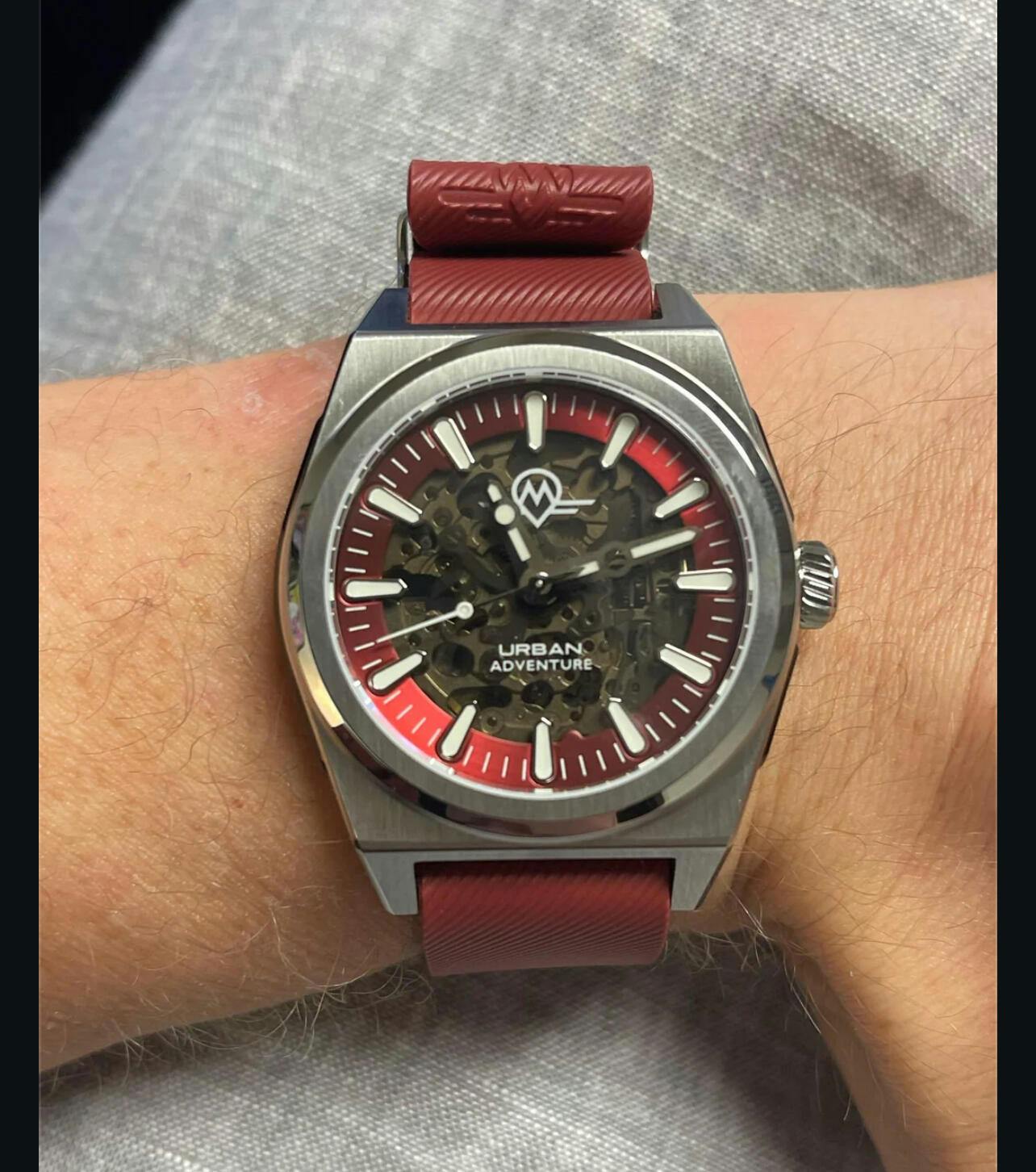 MONRO URBAN ADVENTURE MUA-S2, Automatic Skeleton, 40mm Stainless Steel, Red Dial